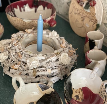 Erde- ein Geschenk der Natur, gepaart mit den Elementen Wasser, Luft und Feuer. Ursprünglicher als bei der Keramikkunst ist es kaum. Ein Klumpen Ton mit der Hände Kraft zu klopfen, zu kneten und zu formen. Nah der Erde zu sein und all die Sinnlichkeit, welche in uns schlummert mit einfließen zu lassen, gespannt zu sein auf das Endergebnis nach dem Brand. Auch dies ist ein kunstvolles Schaffen welches fasziniert, herausfordert und symbolisiert, dass der Mensch nicht immer perfekt sein muss.